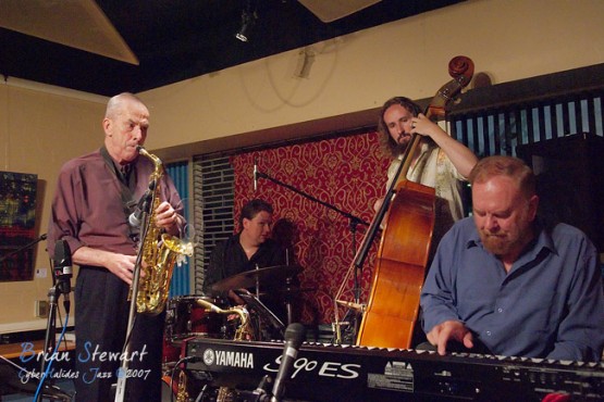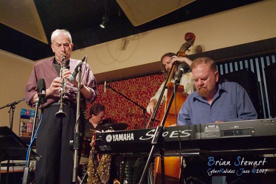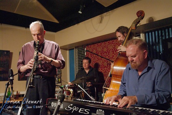 An evening of Jazz at the Gods featuring the Ross Clarke Trio with Terry Wynn (Ross Clarke on electric piano, Terry Wynn on clarinet and three saxophones, James Luke on bass, and Mark Sutton on drums) --- ANU, Canberra, ACT