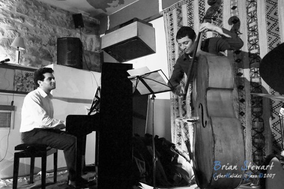 Wajdi Cherif Trio at the 7 Lézards (Wajdi Cherif: piano; Samuel Hubert: contrebasse; Mourad Benhammou: batterie) --- rue des Rosiers, 4th Arrondissement, Paris, France
