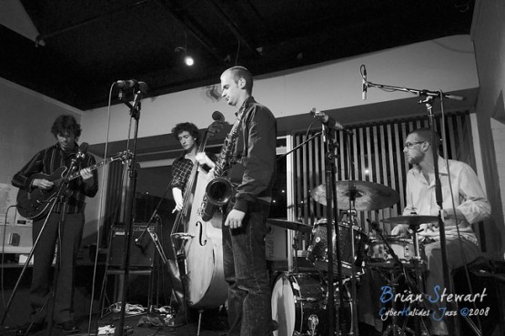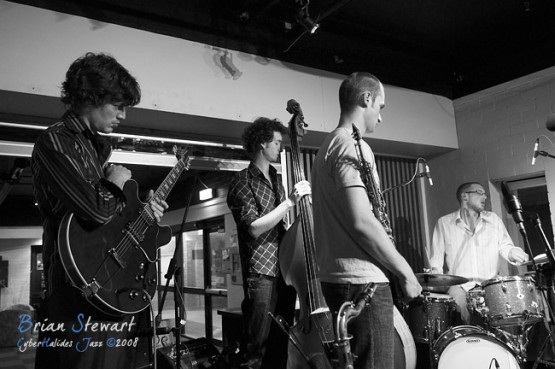 An evening of Jazz at the Gods featuring the James Annesley Quartet (James Annesley saxophones, Hugh Stuckey guitar, Tom Lee bass, Hugh Harvey drums) --- ANU, Canberra, ACT