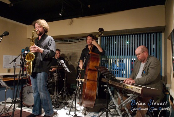 An evening of Jazz at the Gods featuring the John Mackey Quartet (John Mackey on tenor saxophone, Wayne Kelly on piano, Jonathan Zwartz on bass, Mark Sutton on drums) --- ANU, Canberra, ACT
