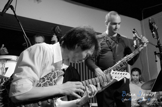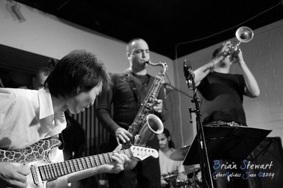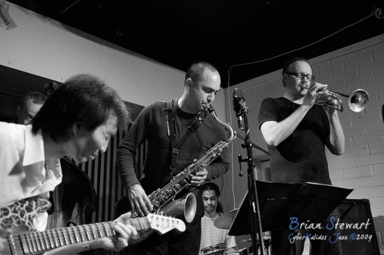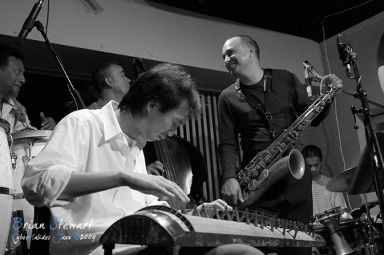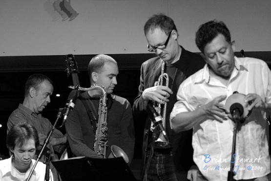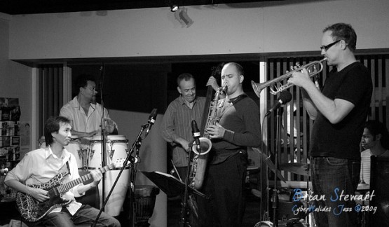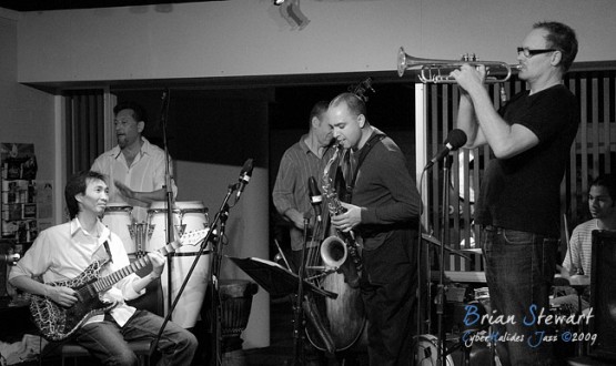 An evening of Jazz at the Gods featuring Way Out West (Eclectic trumpeter/composer Peter Knight; Vietnamese traditional music virtuoso Dung Nguyen [dan bau, dan tranh, modified electric guitar]; West African percussion specialist Ray Pereira; reed man Adam Simmons; bassist Howard Cairns; drummer Rajiv Jayaweera) --- ANU, Canberra, ACT