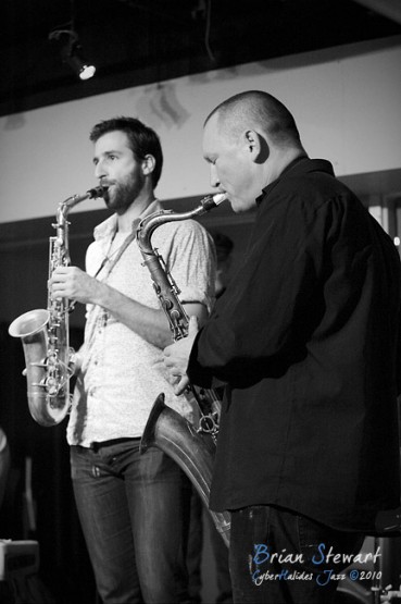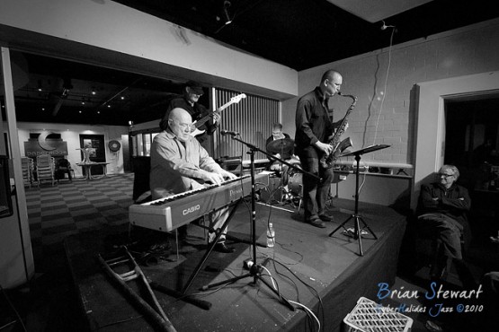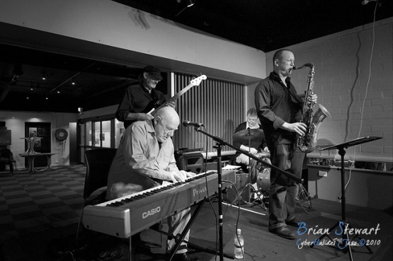An evening of Jazz at the Gods featuring the Chuck Yates Quartet (Chuck Yates - piano; James Ryan - sax; Ron Philpott - electric bass; Colin Hoorweg - drums; special guest for last number: Dan Junor - sax) --- ANU, Canberra, ACT