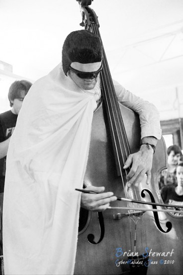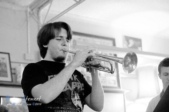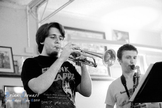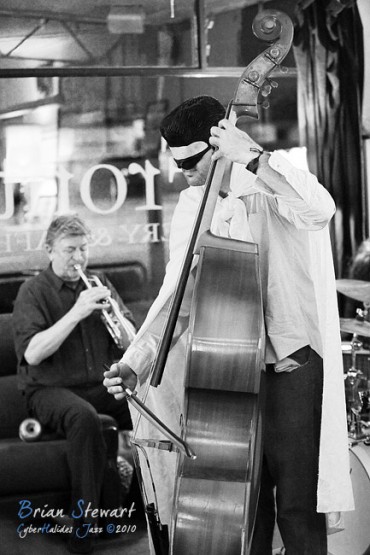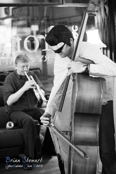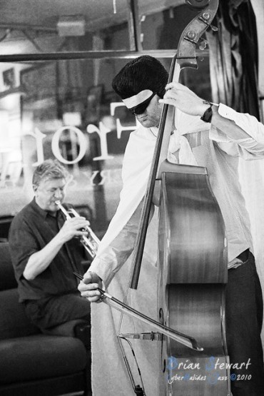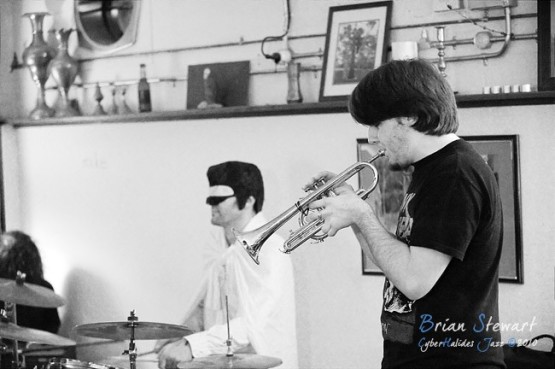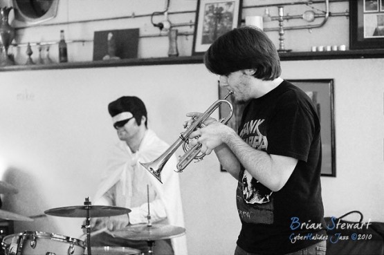 An evening of Jazz at the Front Cafe and Gallery featuring the Japanese Elvis impersonator Erebis (Reuben Lewis - trumpet; Miroslav Bukovsky - trumpet) --- Lyneham, Canberra, ACT
