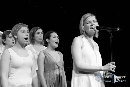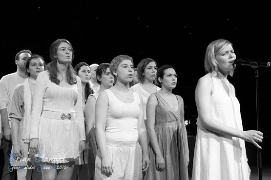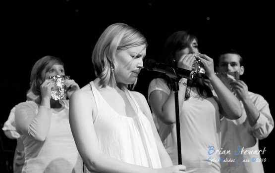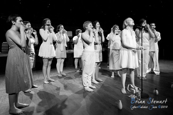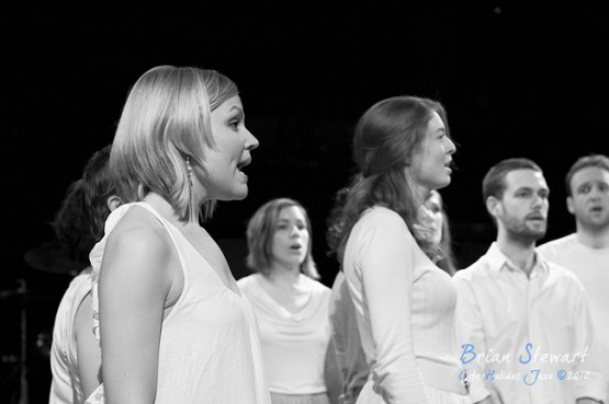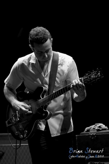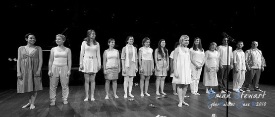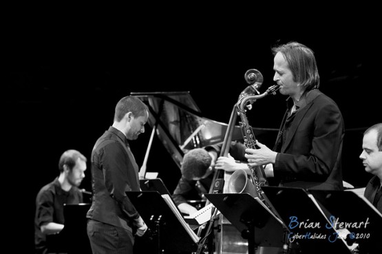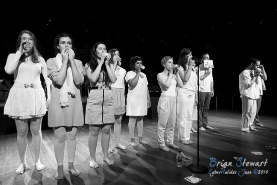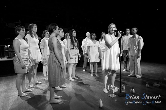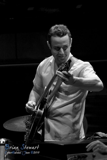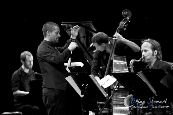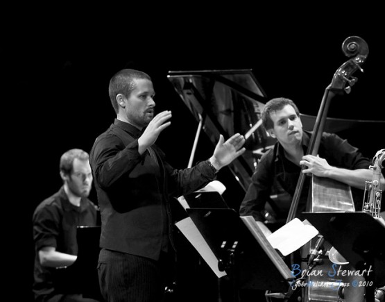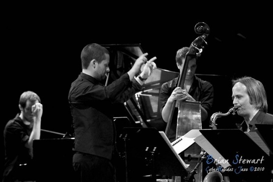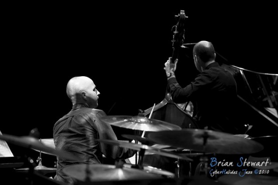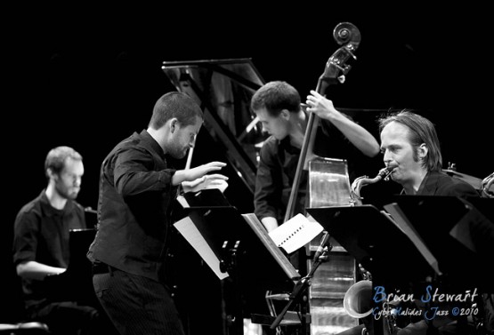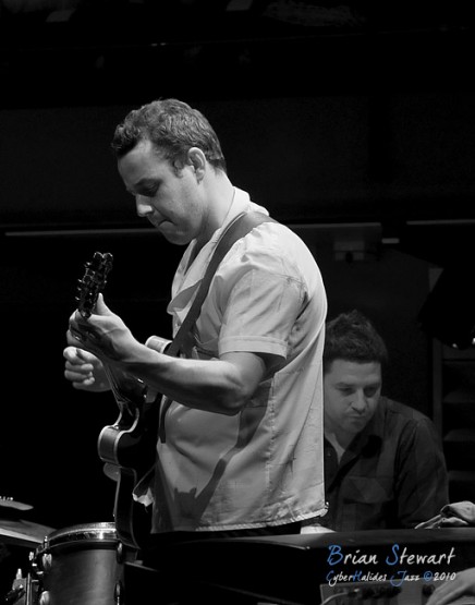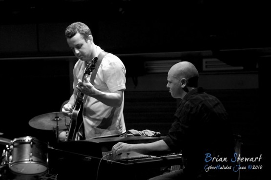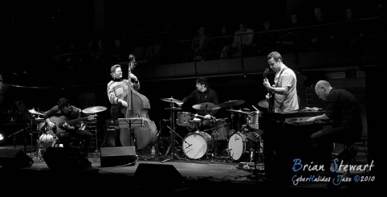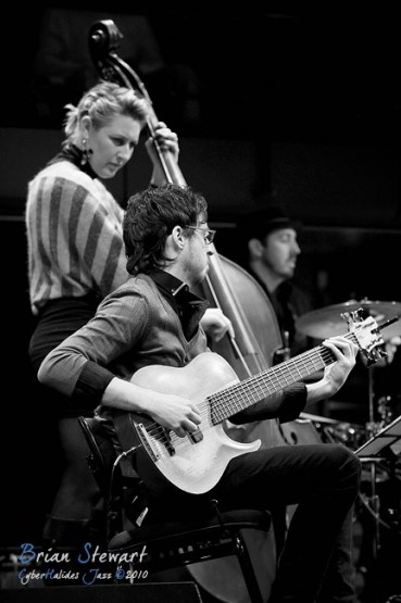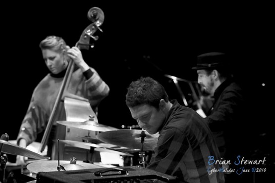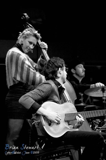 Zoe Hauptmann, James Hauptmann & Evan Mannell supporting Ben Hauptmann (guitar; Zoe Hauptmann - double bass; James Hauptmann - drums; Evan Mannell - drums, Chris Hale - electric bass; Damien Slingsby - keyboard) performing in the concert to decide the MCA Freedman Jazz Fellowship 2010 --- Opera House, Sydney, NSW