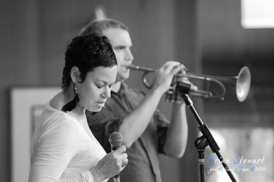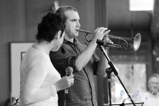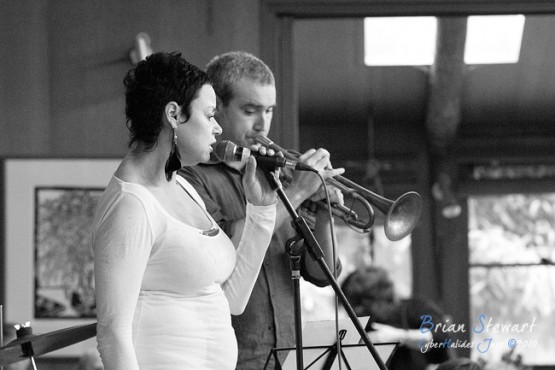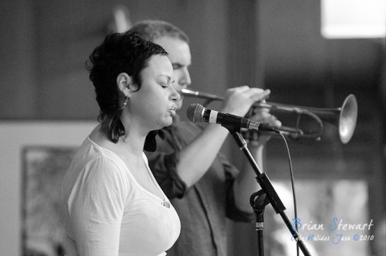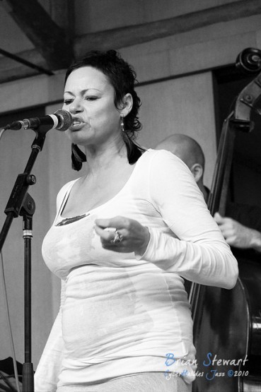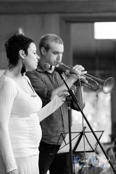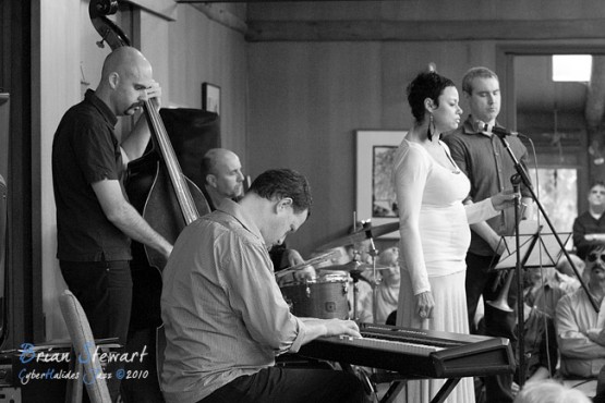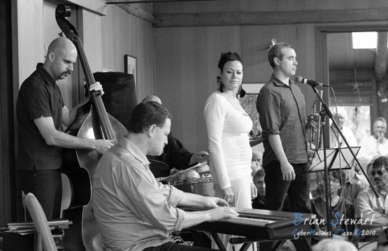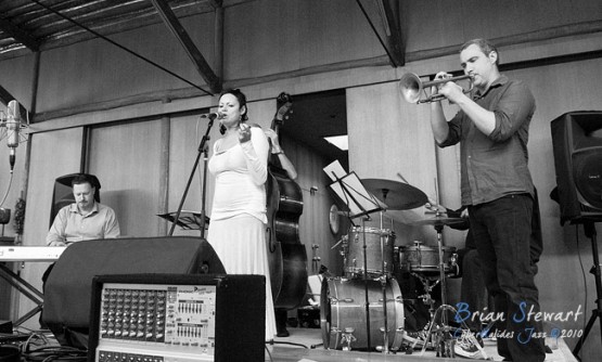 An Afternoon of Jazz at Penders promoted by Zephyrs Performances Inc featuring the Tina Harrod Quintet (Tina Harrod - singer; Phil Slater - trumpet; Mat McMahon - piano; Ben Waples - bass; Hamish Stuart - drums) --- Bithry Inlet, Tanja, NSW
