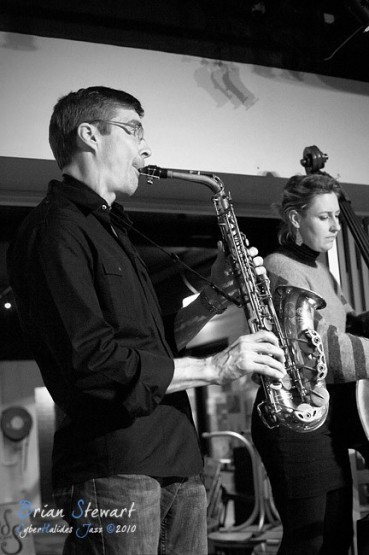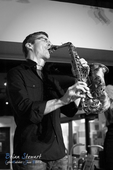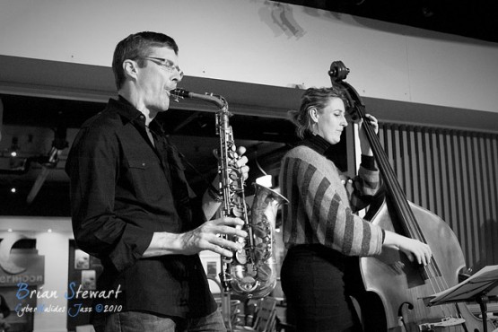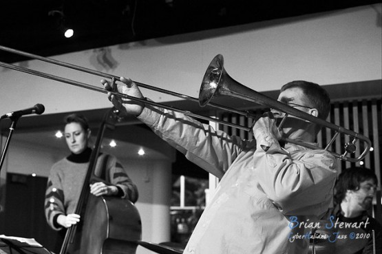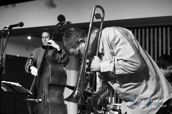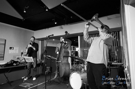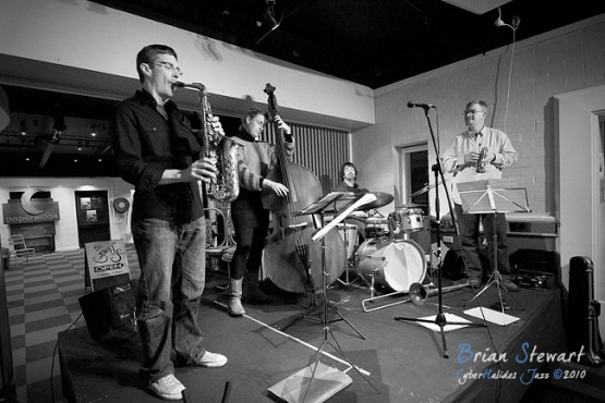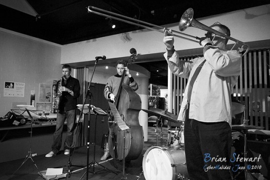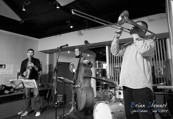 An evening of Jazz at the Gods featuring The World According to James (James Greening - joyously idiosyncratic trombonist and composer; Andrew Robson - saxophonist; Zoe Hauptmann - bass; Toby Hall - drums) --- ANU, Canberra, ACT