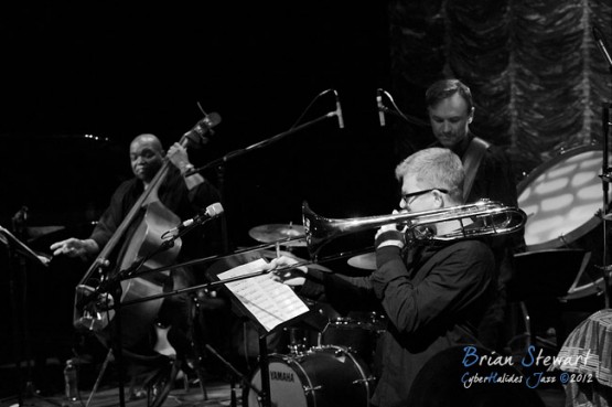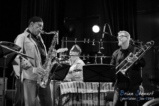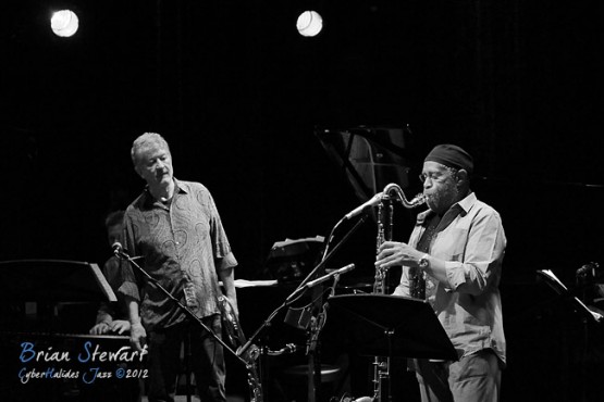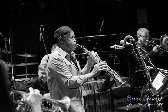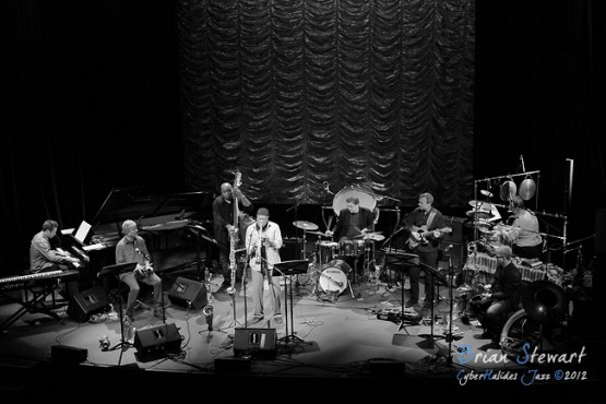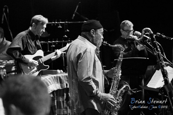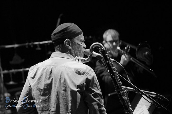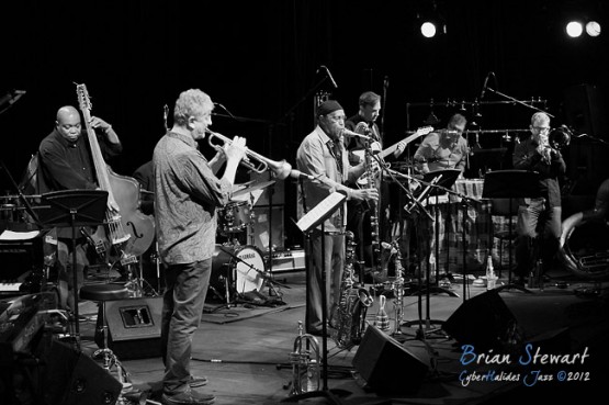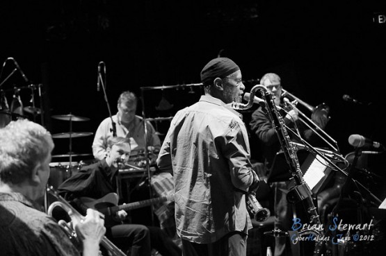 Bennie Maupin (sax/clarinet) with ANU Staff & Alumni (Eric Ajaye - basses; Michael Azzopardi - piano/keys; Carl Dewhurst - guitars; Mark Sutton - drums; Gary France - percussion; James Greening - trombones; Miroslav Bukovsky - trumpet/fugelhorn) at the 2012 Capital Jazz Project held at the Street Theatre -- Civic, Canberra, ACT