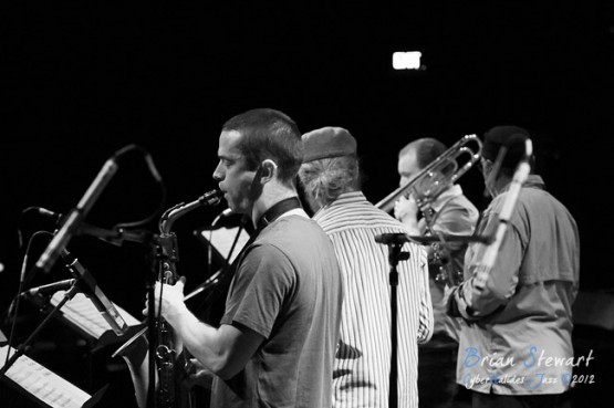 Freshbace at the 2012 Capital Jazz Project featuring Bennie Maupin (sax/clarinet) with ANU students (Andy Butler - piano; Jordan Tarento - basses; Daniel Kim - guitars; Henry Rasmussen - drums; Matt Handel - alto saxophone; Tom Sly - trumpet/flugelhorn; Patrick Langdon - trombone; Llewellyn (El) Osborn - solo violin; [String Quartet:] Tobias Chisnall - violin; Estelita Rae - violin; Anthony De Battista - viola; Julia Janiszewski - cello) held at the Street Theatre -- Civic, Canberra, ACT