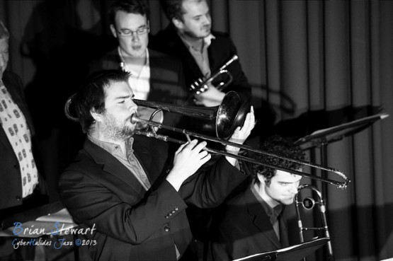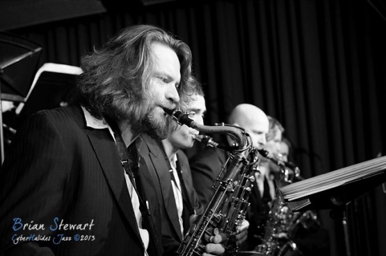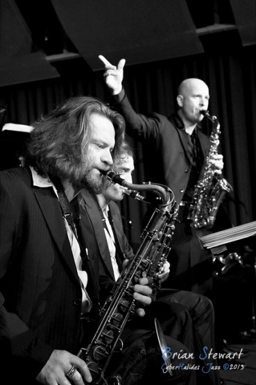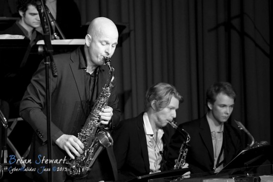 The inaugural performance by the ACT Jazz Orchestra at the Radford College Performing Arts Centre (saxes - John Mackey, Dan Bray, Andrew Hackwill, Calum Builder, Andrej Thompson; trombones - Rod Harding, Valdis Thomann, Rob Lee; trumpets: Tim Bowyer, Miroslav Bukovsky, Dan Mclean, Ben Marston; piano - Wayne Kelly; guitar - Greg Stott; bass - James Luke; drums - Mark Sutton) --- Bruce, Canberra, ACT