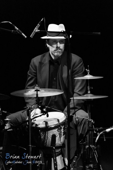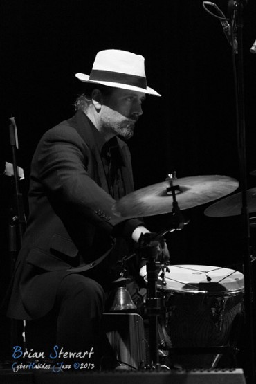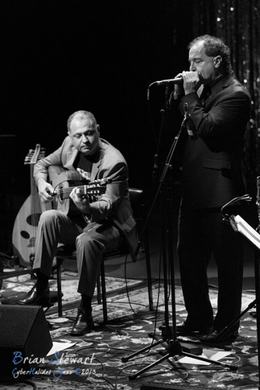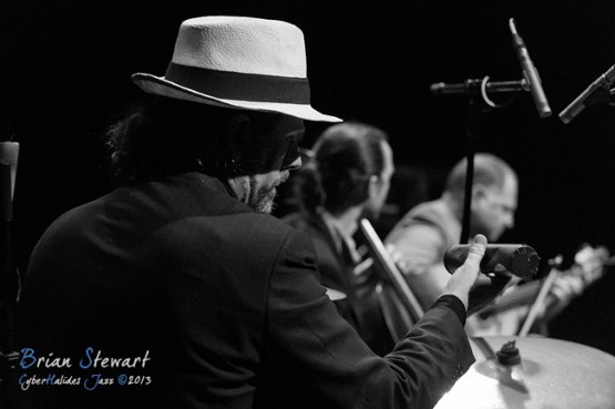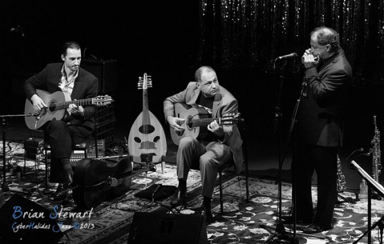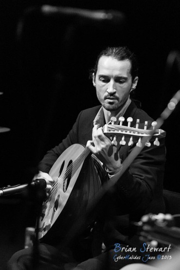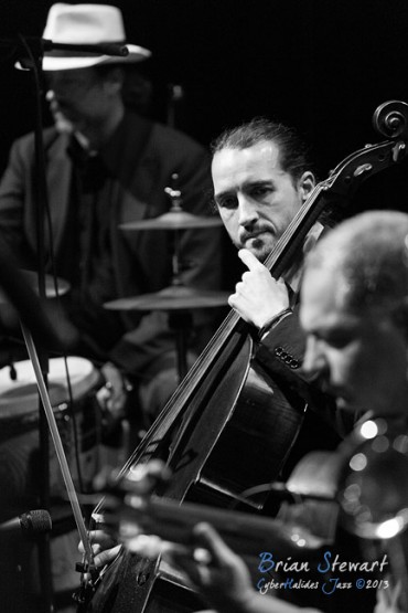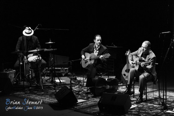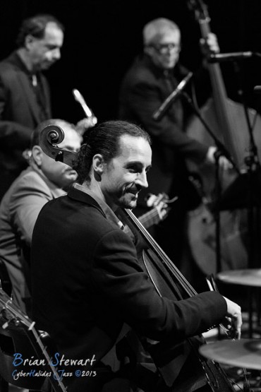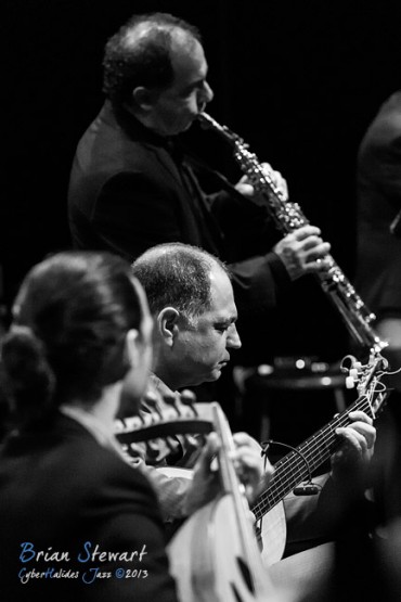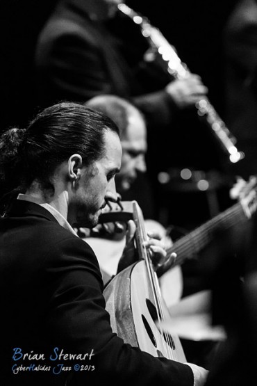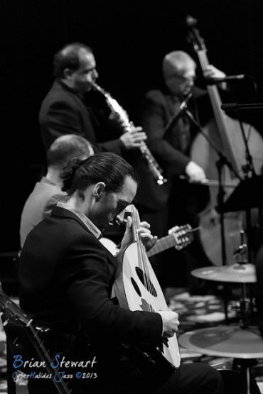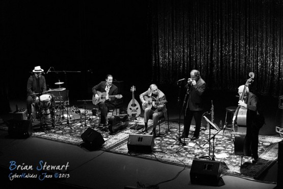 Arrebato Ensemble ( Greg Alfonzetti - flamenco guitar / composer; Damian de Boos-Smith - cello / guitar / oud / mandolin / composer; Stuart Henderson – drums and percussion; Dave Ellis - double bass; Andrew Poniris - alto and soprano saxophones/harmonica) at the 2013 Capital Jazz Project held at the Street Theatre -- Civic, Canberra, ACT