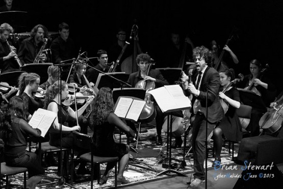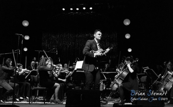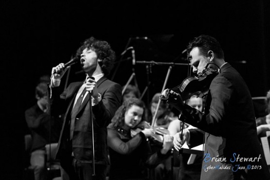 The Raah Project (Tamil Rogeon - violin and composition; Ryan Ritchie - vocals and composition; The ANU School of Music mixed Orchestra) at the 2013 Capital Jazz Project held at the Street Theatre -- Civic, Canberra, ACT
