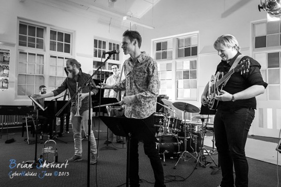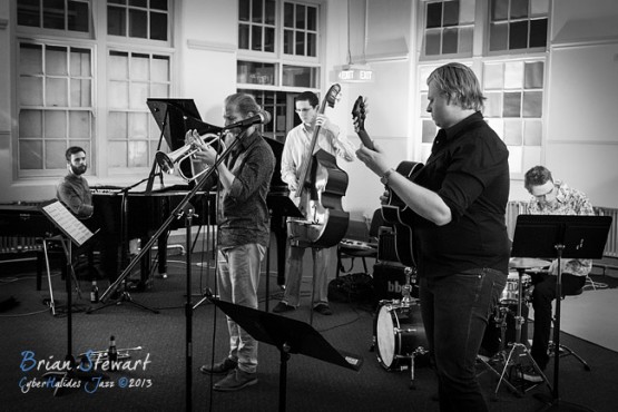 RasRufus (Henry Rasmussen - drums, compositions; Victor Rufus - guitar, compositions; Luke Sweeting - piano, rhodes; Jared Plane - electric and acoustic bass; Tom Sly - trumpet, flugelhorn) launching their CD 'Tanzverbot' at the Ainslie Arts Centre --- Ainslie, Canberra, ACT