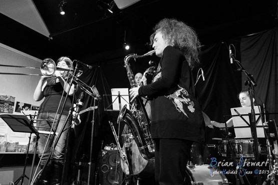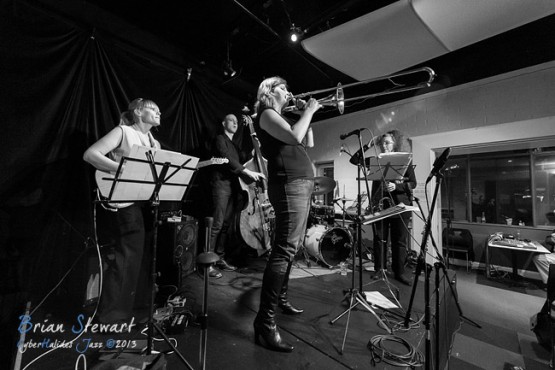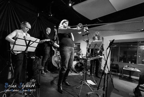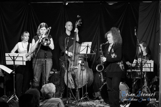 An evening of Jazz at the Gods featuring the Sandy Evans' Sydney Women's Jazz Quintet (Sandy Evans - saxophones; Alex Silver - trombone; Jess Green - guitar; Karl Dunnicliff - bass; Jody Michael - drums) --- ANU, Canberra, ACT