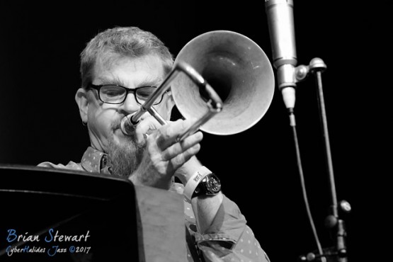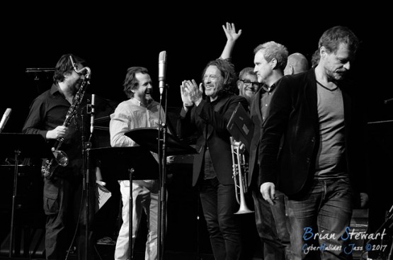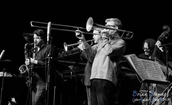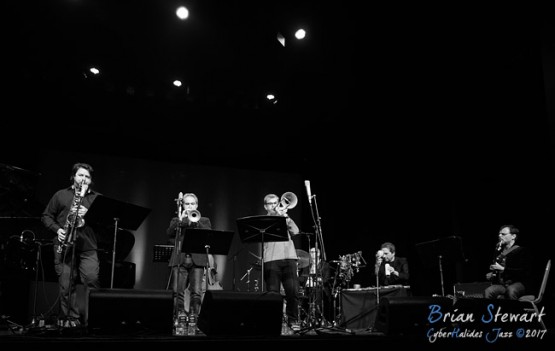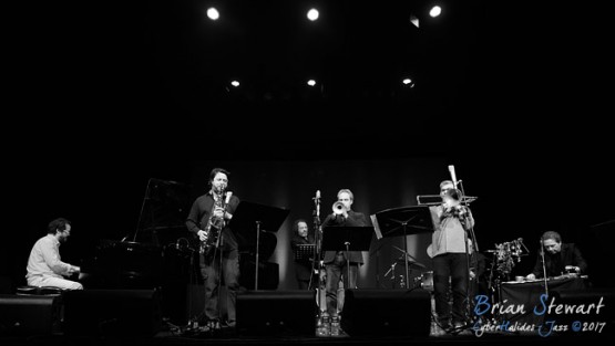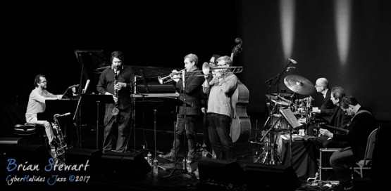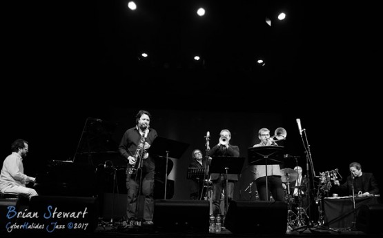 The Jonathan Zwartz Ensemble (Jonathan Zwartz - bass; Barney McAll - piano; Hamish Stuart - drums; Julien Wilson - sax; Phil Slater - trumpet; James Greening - trombone; Fabian Hevia - percussion; Steve Magnusson - guitar) launching their new CD and performing in the WPAC Theatre at the 2017 Wangaratta Festival of Jazz