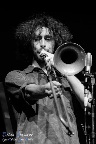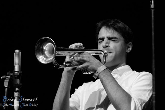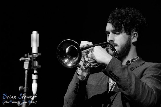 The finals of the National Jazz Awards (1st: James Macauley - trombone; 2nd: Niran Dasika - trumpet; 3rd: Thomas Avgenicos - trumpet; Band: Tom O'Halloran - piano; Brendan Clarke - bass; Ben Vanderwal - drums) performing in the WPAC Theatre at the 2017 Wangaratta Festival of Jazz