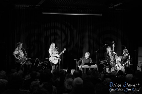 The Lucky Oceans Quintet (Lucky Oceans - pedal steel; Paul Williamson - sax; Nick Haywood - bass; Claire Anne Taylor - voice; Konrad Park - drums) performing in the WPAC Theatre at the 2017 Wangaratta Festival of Jazz