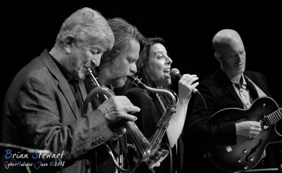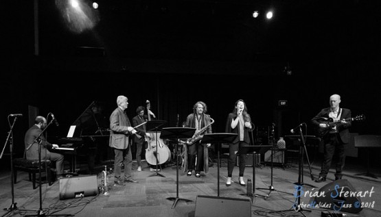 The ANU Jazz Faculty Band (John Mackey - sax, Miroslav Bukovsky - percussion & trumpet, Rachael Thoms - voice, Hugh Barrett - piano, Greg Stott - guitar, Isaac Said - bass, Mark Sutton - drums) in a jazz fundraising concert for the Friends of the ANU School of Music held in the Big Band Room --- ANU, Canberra, ACT