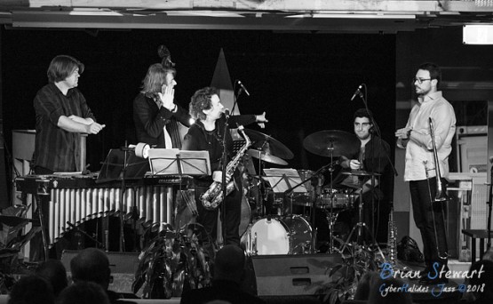 An evening of Jazz at the ANU Popup Village featuring the Gai Bryant Quintet (Gai Bryant - saxophones & composer, Danny Carmichael - trombone & trumpet, Ed Goyer - piano & vibes, Nick Henderson - bass, Alex Hirlian - drums) --- ANU, Canberra, ACT