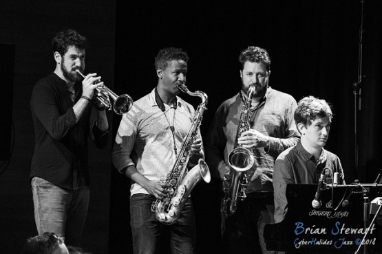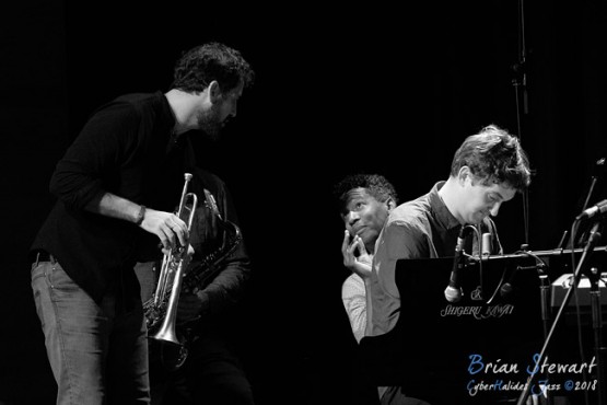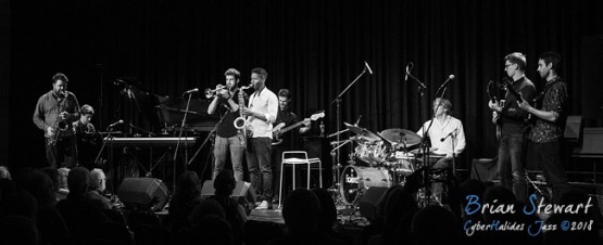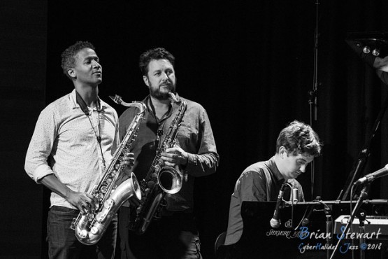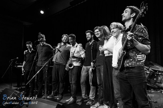 An afternoon of Zephyrs Jazz in the Four Winds Windsong Pavilion with the theme of "Bringing Their Music Back Home", featuring the end-of-concert Jam Session (Alex Stuart - guitar; Arno de Casanove - trumpet, voice & keyboard; Irving Acao - sax & piano; Carl Morgan - guitar; Kade Brown - piano; Julien Wilson - sax; Matilda Abraham - voice; Ouriel Ellert - electric bass; Sam Anning - bass; Antoine Banville - drums; Alex Hirlian - drums) --- Barragga Bay, near Bermagui, NSW