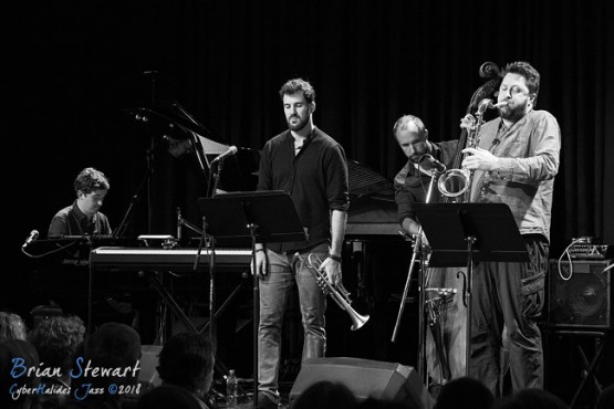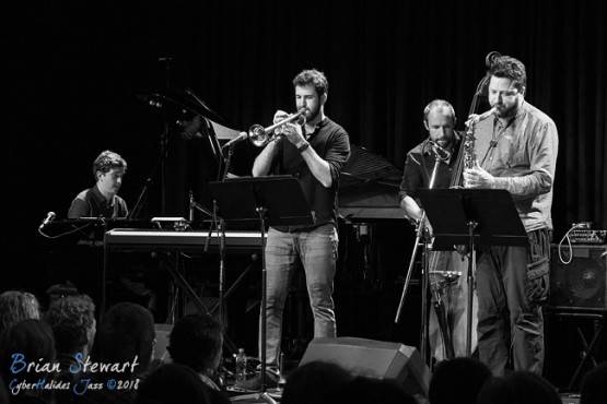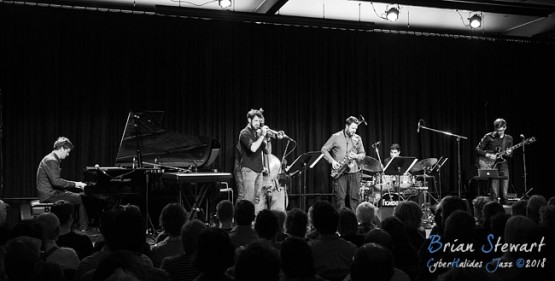 An afternoon of Zephyrs Jazz in the Four Winds Windsong Pavilion with the theme of "Bringing Their Music Back Home", featuring the Kade Brown Band (Kade Brown - piano; Carl Morgan - guitar; Julien Wilson - sax; Arno de Casanove - trumpet; Sam Anning - bass; Alex Hirlian - drums) --- Barragga Bay, near Bermagui, NSW