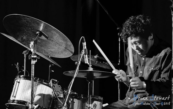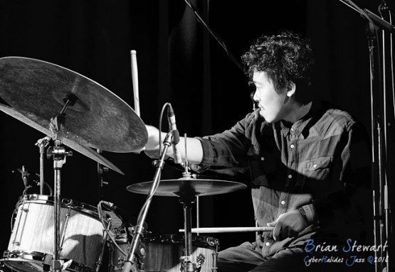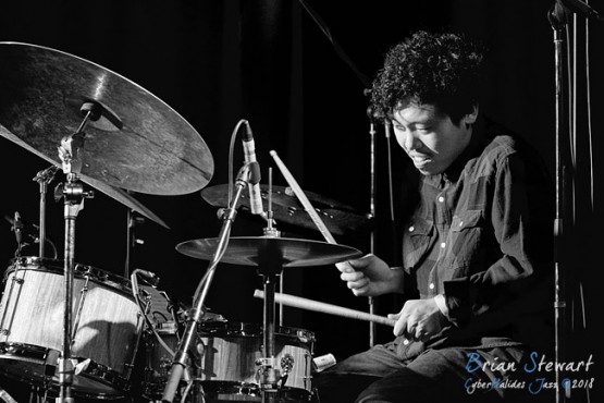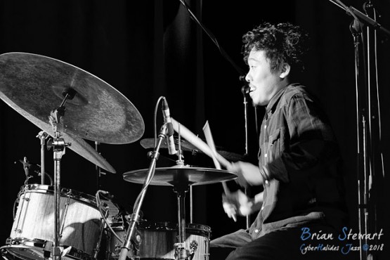 This was impressive music - my favourites being I Seek the Middle Ground and All Good Things, both with plaintive, prayerful motifs played on Niran's trumpet, interspersed with solos from the other musicians, notably a very senstive one by Sumire in All Good Things. Despite that the images here focus on Shun Ishiwaka on drums, partly for his powerful solo on Todoroki Falls. ABC Jazz recorded this set (don't be put off by a short black section at the start).