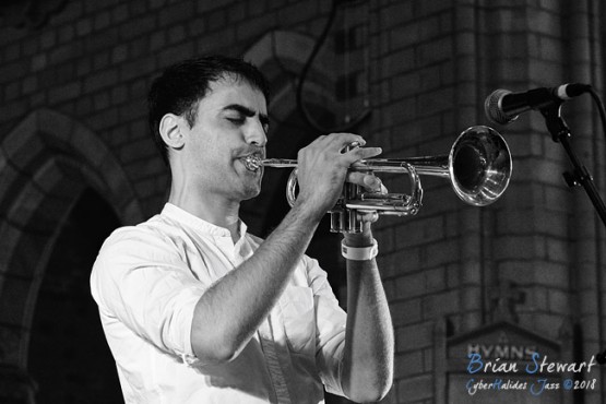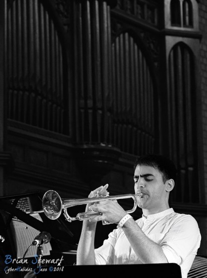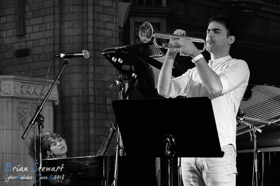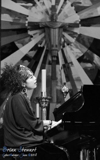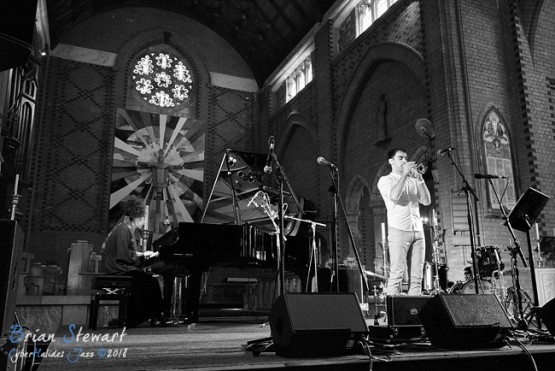 Sumire Kuribayashi (piano) and Niran Dasika (trumpet) performing in Holy Trinity Cathedral at the 2018 Wangaratta Festival of Jazz.