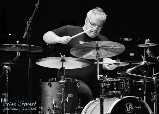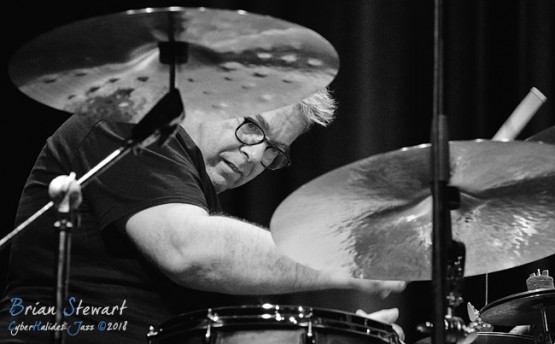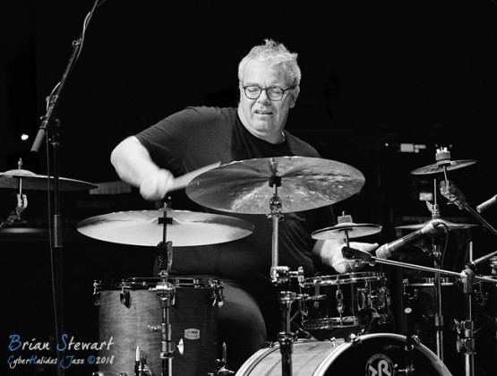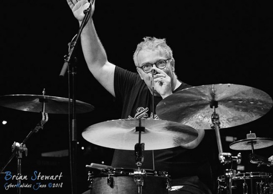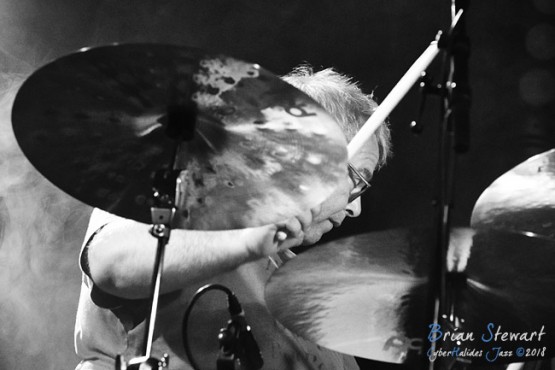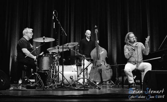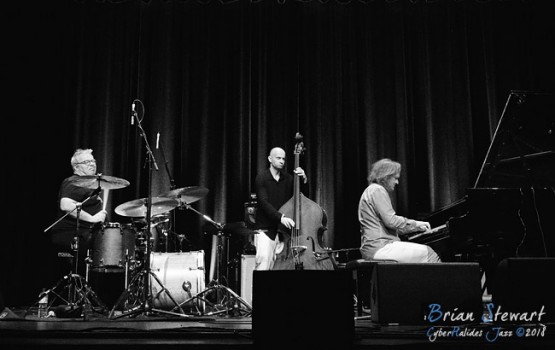 Trio Elf (Gerwin Eisenhauer - drums; Walter Lang - piano; Peter Cudek - bass) performing in the WPAC Theatre at the 2018 Wangaratta Festival of Jazz